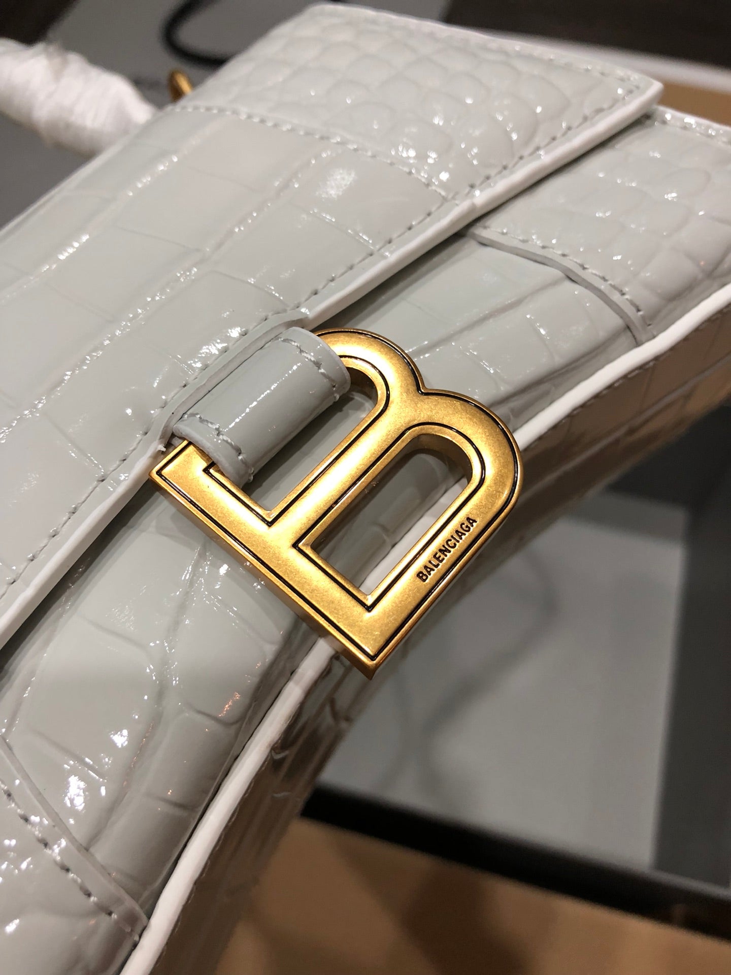 ** Luxury Crocodile White Gold Hourglass Bag - Balenciaga Inspired **